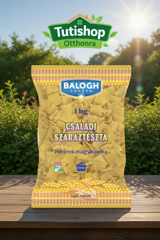 A Balogh tészta fodros nagykockája a magyar konyha egyik legsokoldalúbb alapanyaga, most praktikus, 1 kg-os családi kiszerelésben. Tojás nélkül készülő receptúrája ideális választás azoknak, akik tudatosan kerülik a tojást az étrendjükben, vagy kedvező áron keresnek megbízható minőségű száraztésztát a mindennapi főzéshez.