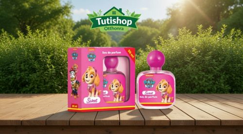 Ikonikus design: A rózsaszín üvegcse és a dobozon látható Skye figura minden kislány polcának dísze lesz.