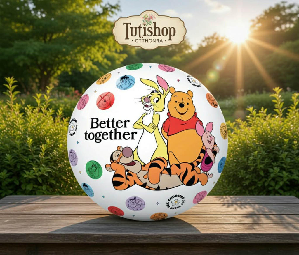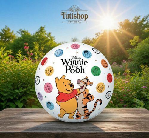 Vidám játék vár minden kisgyermekre ezzel a 23 cm-es Disney Micimackó gumilabdával! A labdán Micimackó és barátai – Tigris, Malacka és Füles – jelennek meg mosolygós, barátságos grafikákkal, amelyek igazi jókedvet visznek minden játékba.