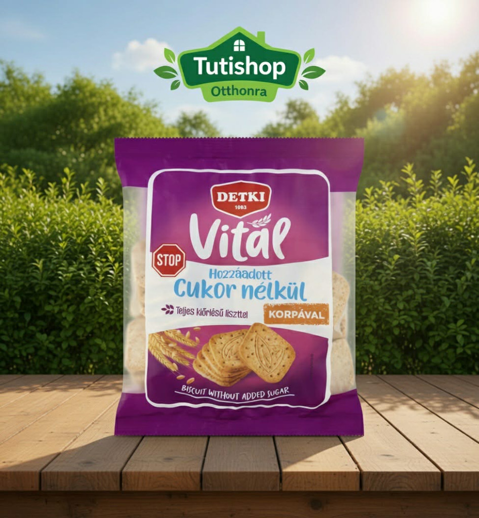 A Detki Vitál termékcsalád Cukorstop tagja azoknak készült, akik a hagyományos háztartási keksz élményét keresik modern, diétabarát formában. Ez a keksz nem tartalmaz hozzáadott cukrot, így kiváló kísérője a reggeli kávénak, teának, vagy alapanyaga lehet a tudatosan összeállított desszerteknek.