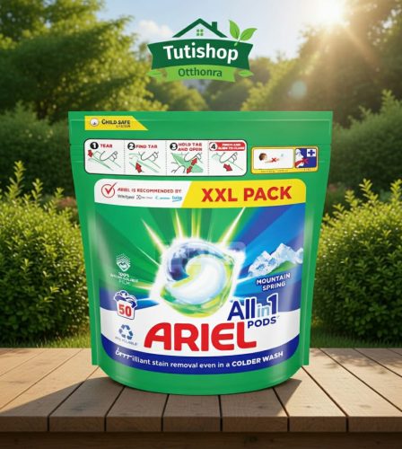 Válassza a kényelmet és a professzionális tisztaságot nagy kiszerelésben! Az Ariel Mountain Spring 50 darabos mosókapszula az All-in-1 technológiának köszönhetően egyetlen lépésben varázsolja tisztává, foltmentessé és üdévé ruháit. Ez a gazdaságos csomagolás hetekre garantálja a gondtalan mosást az egész család számára.
