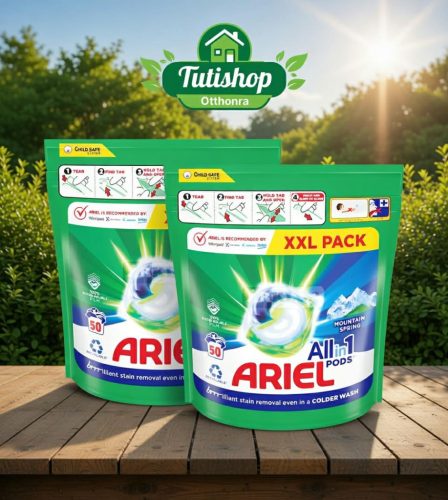 Válassza a kényelmet és a professzionális tisztaságot nagy kiszerelésben! Az Ariel Mountain Spring 50 darabos mosókapszula az All-in-1 technológiának köszönhetően egyetlen lépésben varázsolja tisztává, foltmentessé és üdévé ruháit. Ez a gazdaságos csomagolás hetekre garantálja a gondtalan mosást az egész család számára.